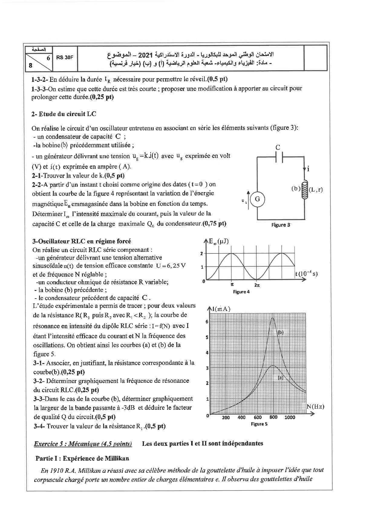Examen National Physique-Chimie Sciences Maths 2021 Rattrapage - Sujet