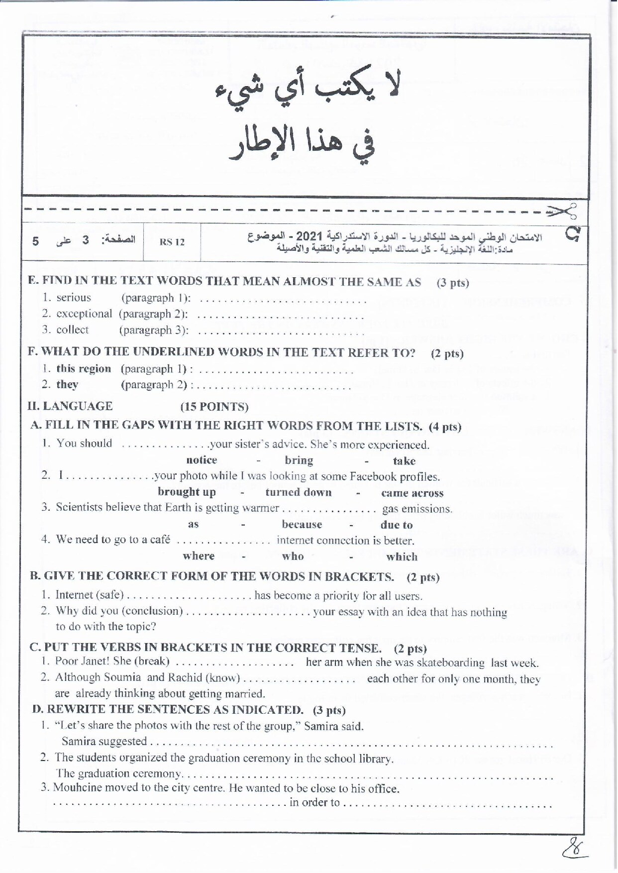 Examen Anglais 2021 Session Rattrapage - Sujet
