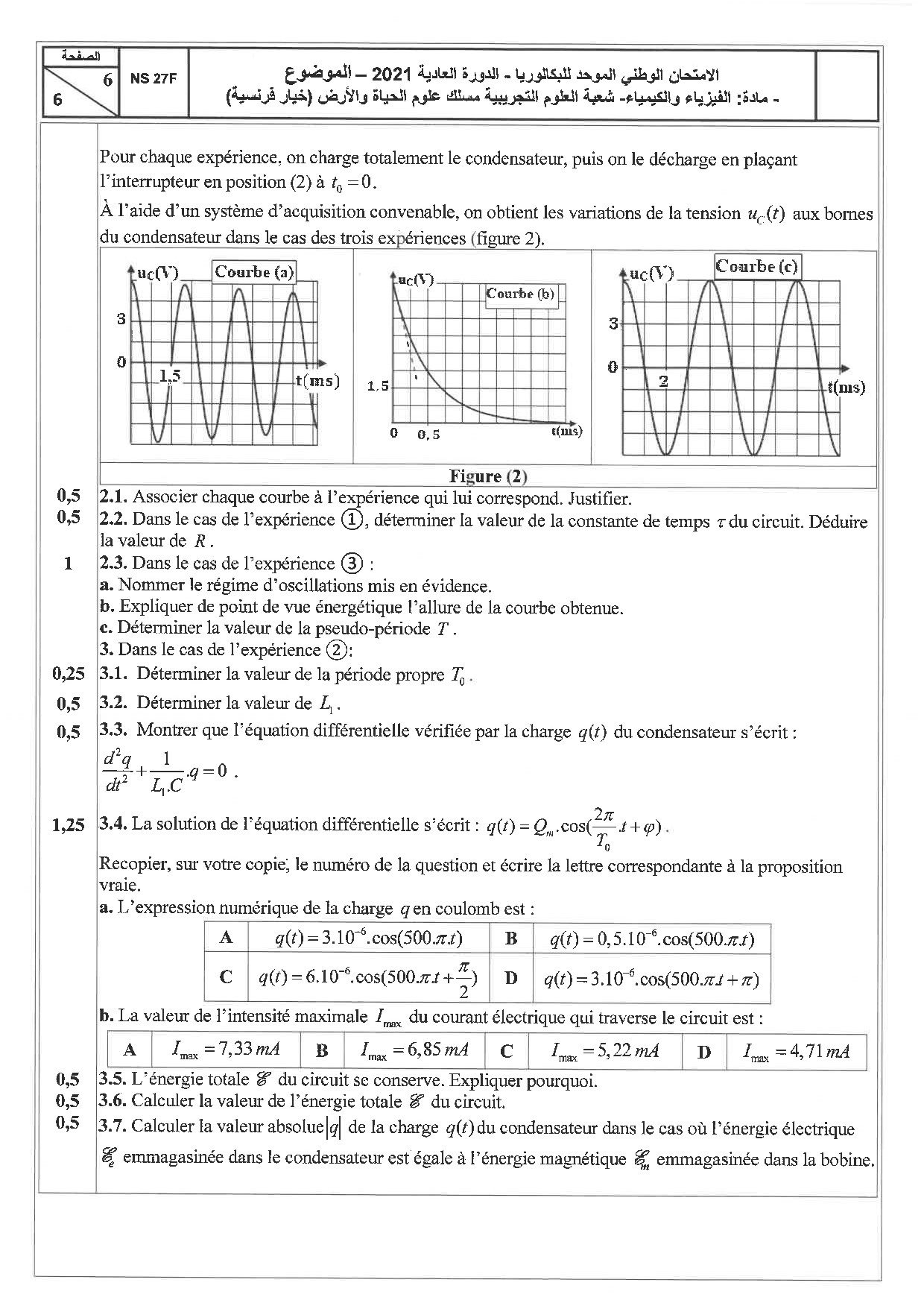 Examen National Physique-Chimie 2 Bac SVT 2021 Normale - Sujet