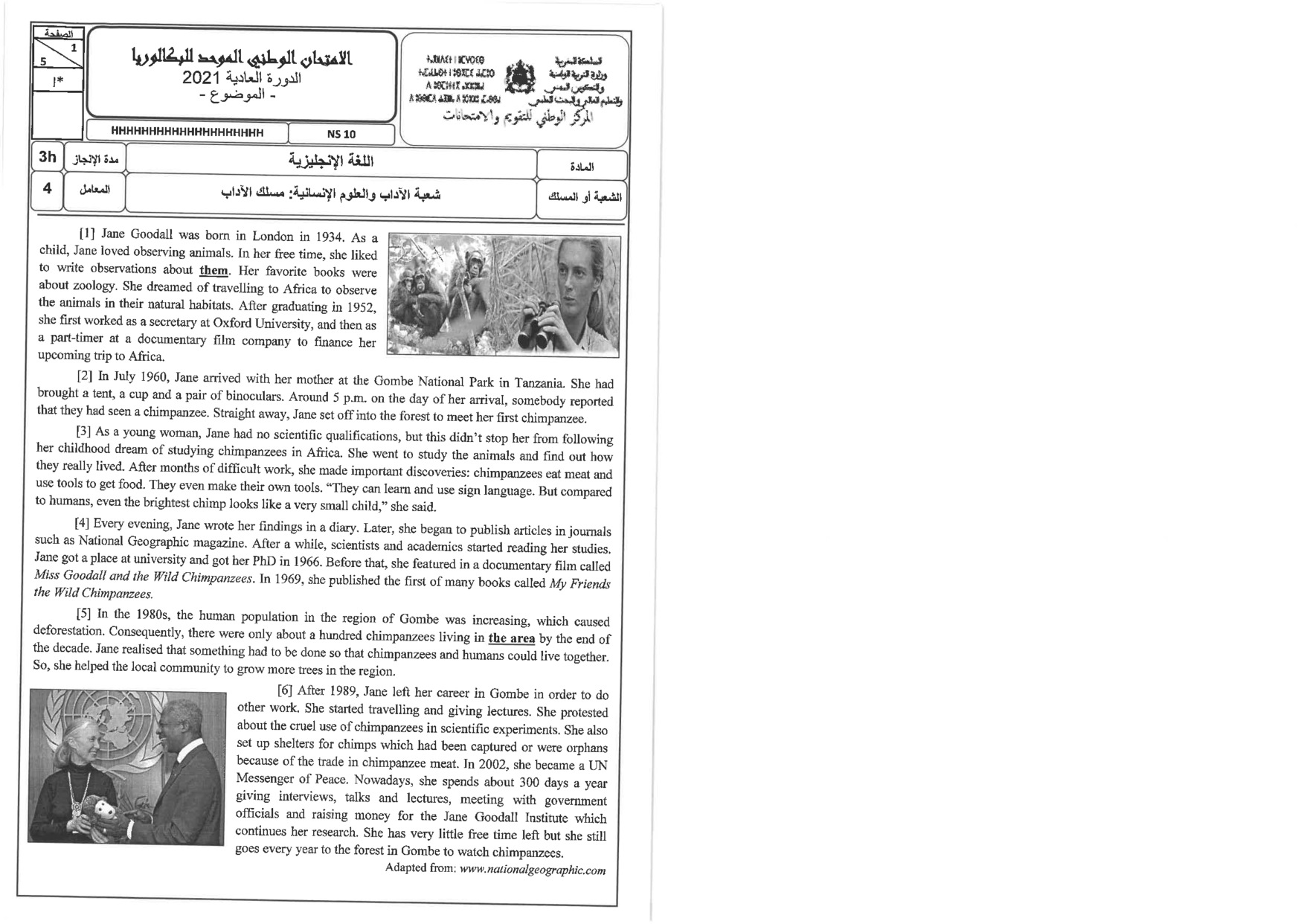 Examen Anglais Lettres 2021 Session Normale - Sujet