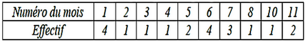 - le caractère étudié [sur quoi ?] est le numéro du mois de naissance.