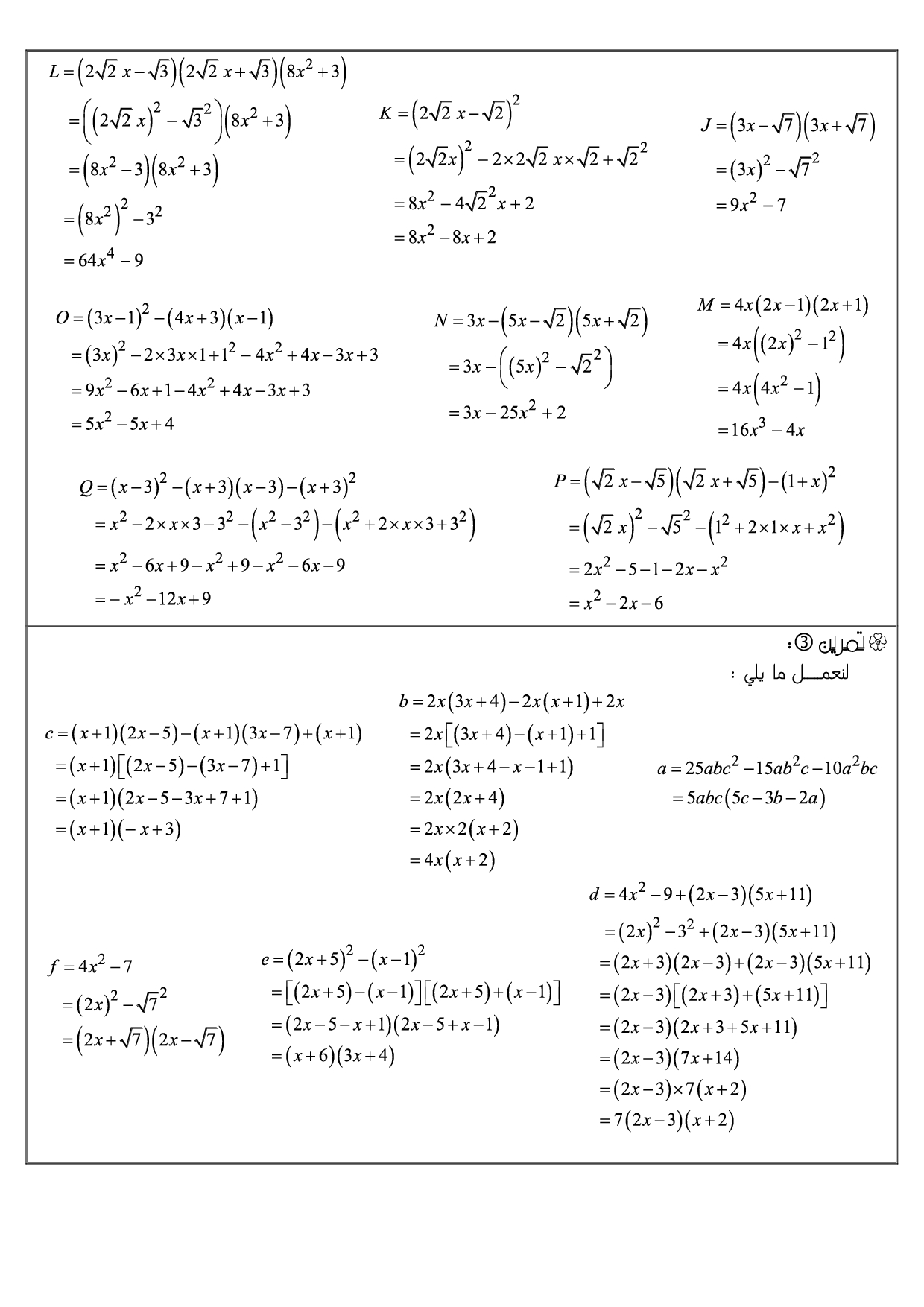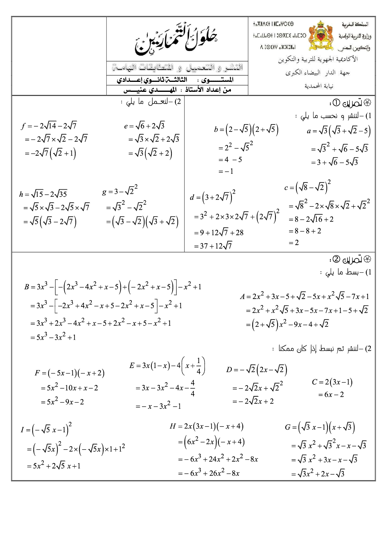 النشر والتعميل والمتطابقات الهامة - تصحيح سلسلة التمارين 2