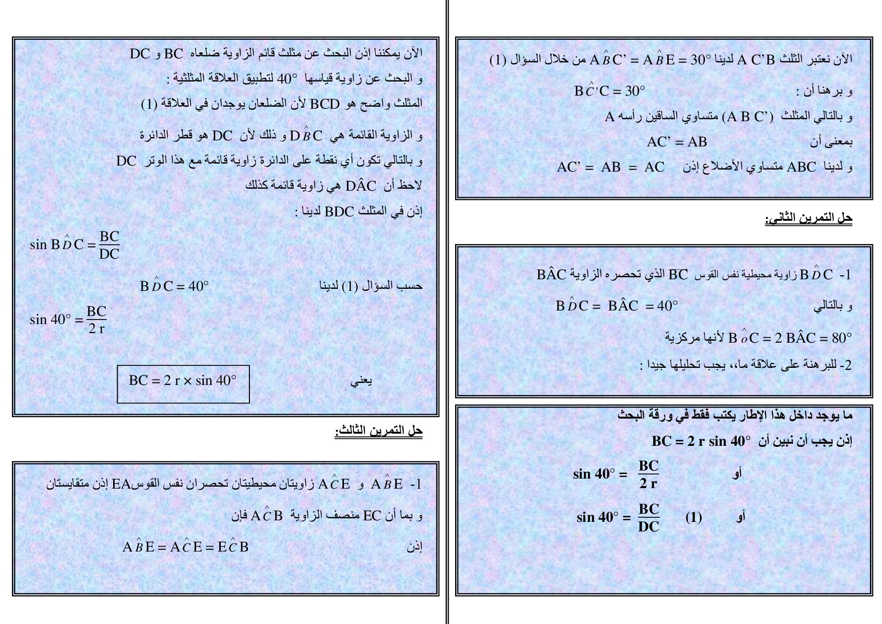 الزوايا المركزية والزوايا المحيطية في دائرة - تصحيح سلسلة التمارين 3