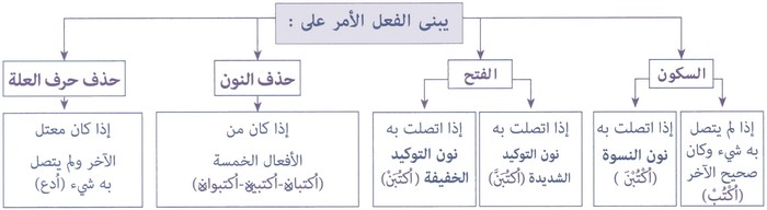 4) يبنى على حذف النون، إن كان مضارعه من الأفعال الخمسة: اكتبي، اكتبا، اكتبوا