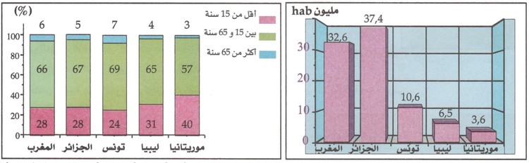 - أصف البنية العمرية لسكان المغرب العربي وأستنتج ميزتها العامة.