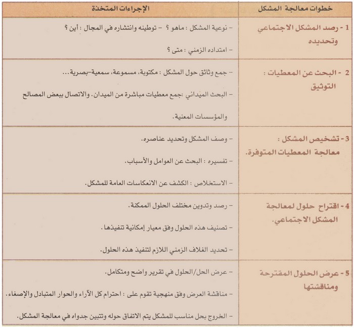 - أحدد الخطوات التي أتبعها في معالجة المشكل الاجتماعي.