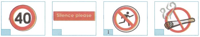 1- Don't run! / 2- Don't smoke! / 3- Drive slowly. / 4- Be quiet.