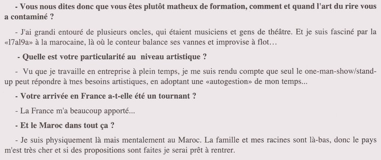 - Dans cette interview, les questions du journaliste ont été supprimées. J'essaie de les imaginer et de les inscrire :