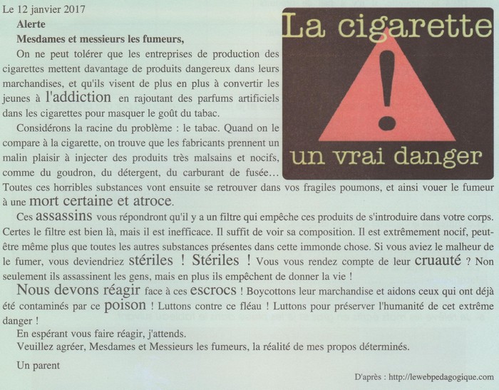 | On cherche à sensibiliser les gens contre la cigarette. |