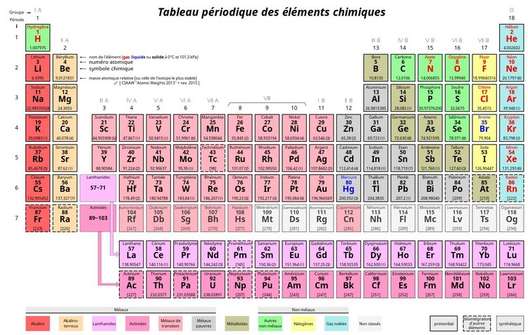 Les atomes des éléments qui appartiennent à une même colonne du tableau périodique constituent une famille chimique.