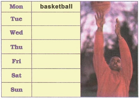 Michael is a student in Boston in the USA. He doesn't like indoor sports ; he prefers outdoor sports and activities. On Mondays, he plays basketball at school with classmates. On Tuesdays, they play tennis, and on Wednesdays, they play baseball. On Thursday afternoons, he plays volleyball for the school team. On Fridays, Michael and his friends don't play games ; they do their homework. On Saturdays, he goes swimming and on Sundays, he stays at home. |