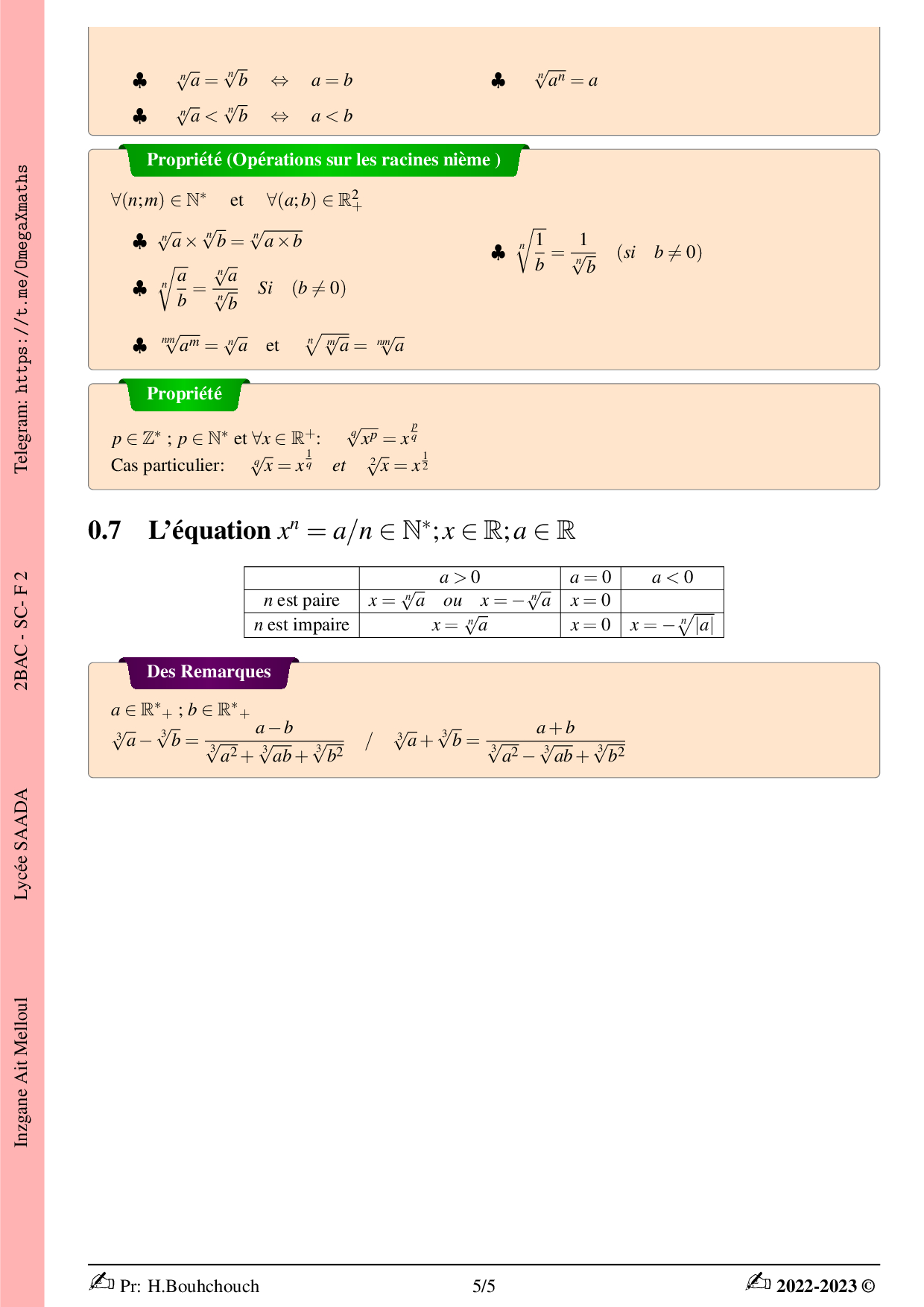 Mathématiques 2ème BAC Sciences Physiques BIOF