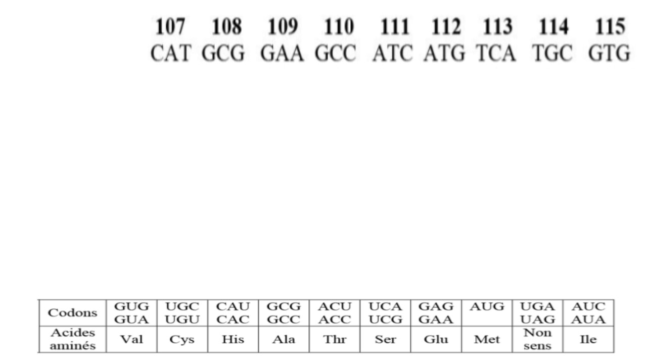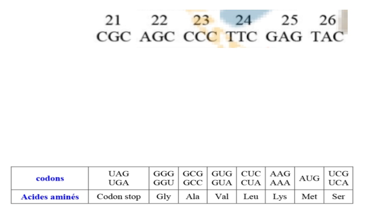 - Le code génétique est constitué par l’ensemble des codons présents sur une molécule d’ARNm : __________