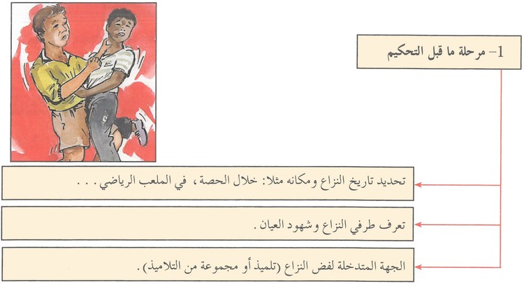 الوثيقة 1 : خطاطة خطوات تدبير نزاع بطرق سلمية (المرحلة 1)