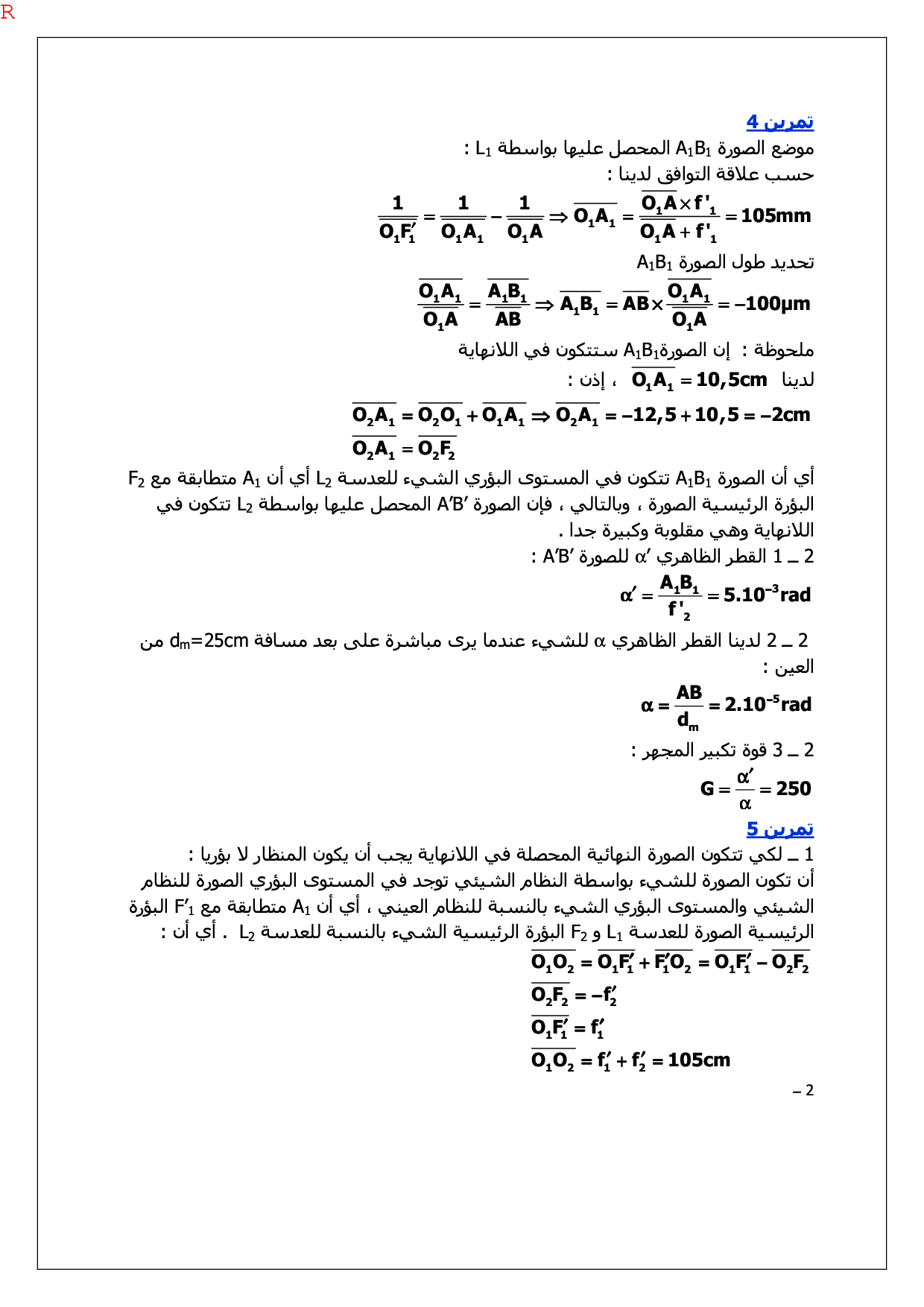بعض الأجهزة البصرية - تصحيح سلسلة التمارين 1