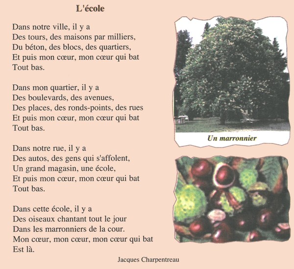- J'apprends par cœur le poème et je le récite devant mes camarades.