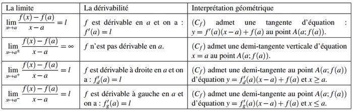 Résumé de La dérivabilité en un point - Interprétation géométrique du nombre dérivé