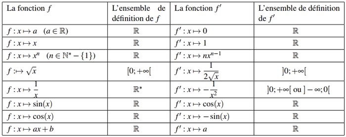 On dit qu’une fonction est dérivable sur un intervalle ouvert si est dérivable en tout point de .