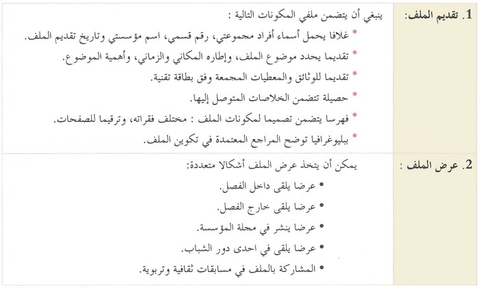 - ترسيخ قدرة المتعلم على إعداد وتقديم وعرض ملف.