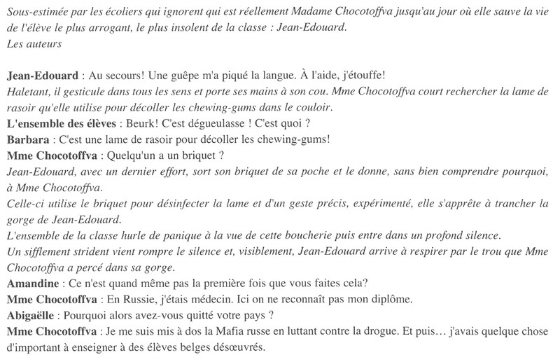 - Je lis le dénouement de la pièce « La leçon de Mme Chocotoffva » et j'en dégage tous les indices qui annoncent la fin de l'intrigue.