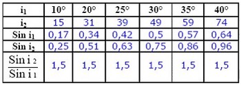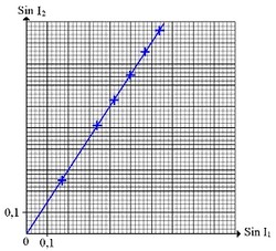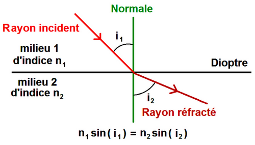 L’angle d’incidence et l’angle de réfraction sont liés par la relation suivante :