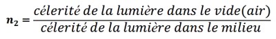 L'indice de réfraction d'un milieu est son indice relatif par rapport au vide :