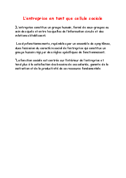 Expression écrite sur L’entreprise en tant que celluce humaine (sociale)