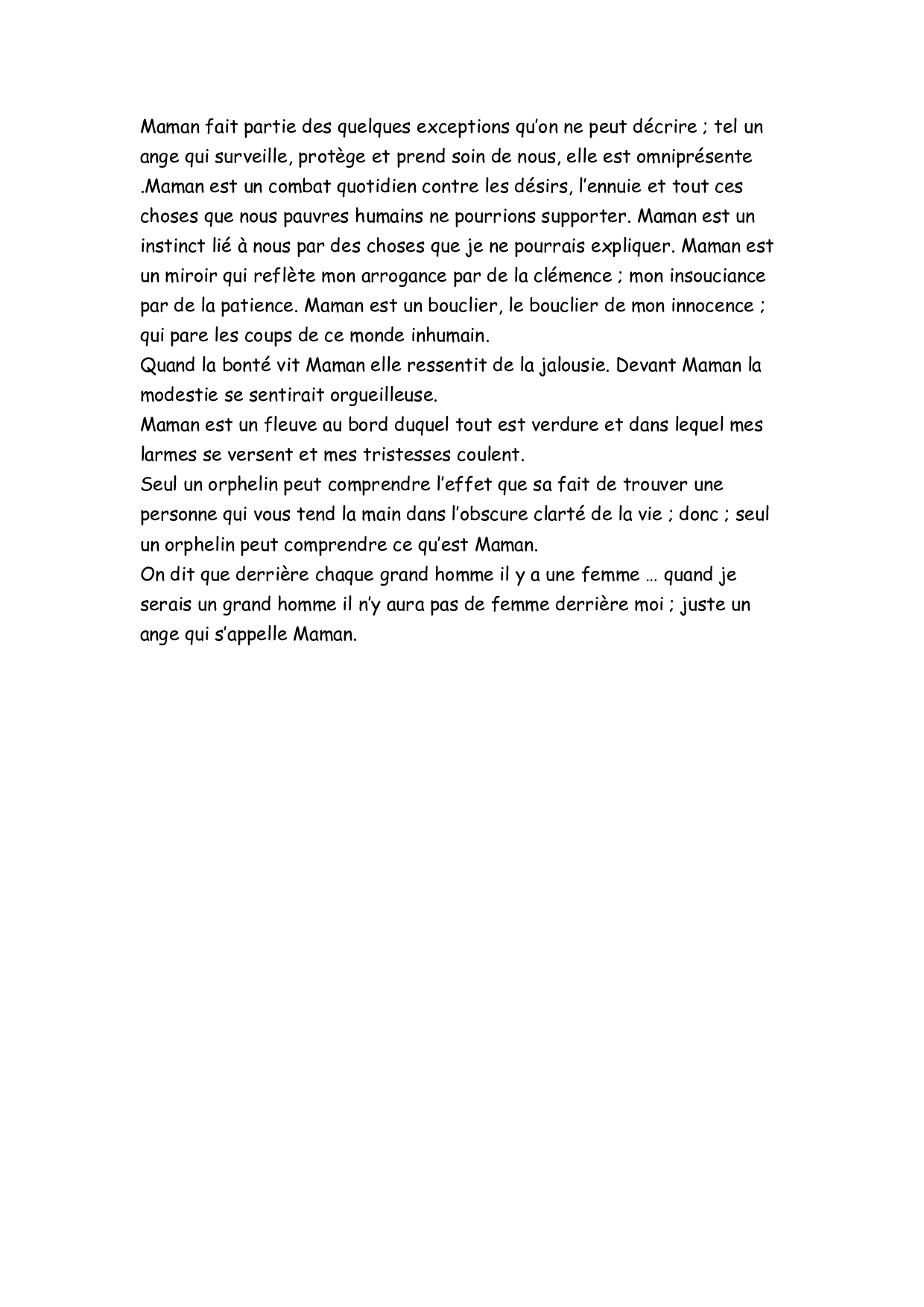 Expression écrite sur la maman