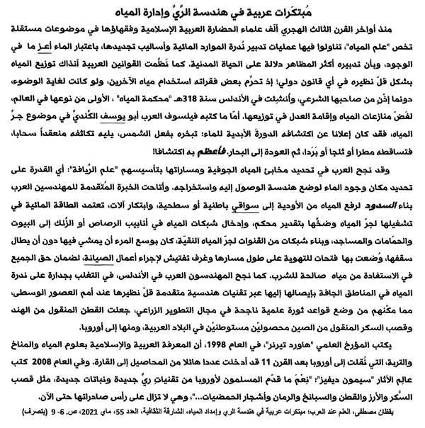 6) استخرج من النص حجة تؤكد سبق العرب إلى الاهتمام بتدبير المياه.
