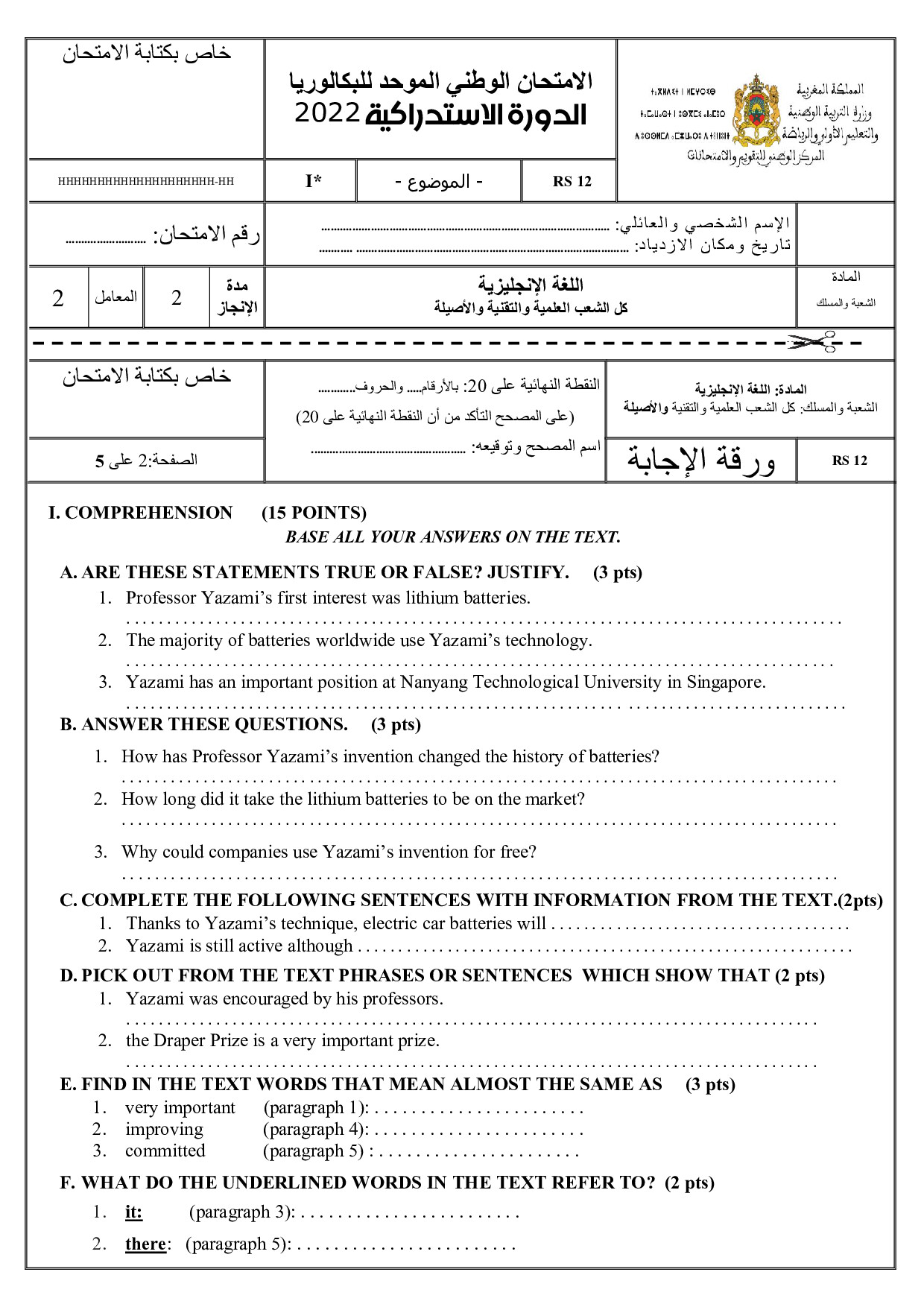 Examen Anglais 2022 Session Rattrapage - Sujet