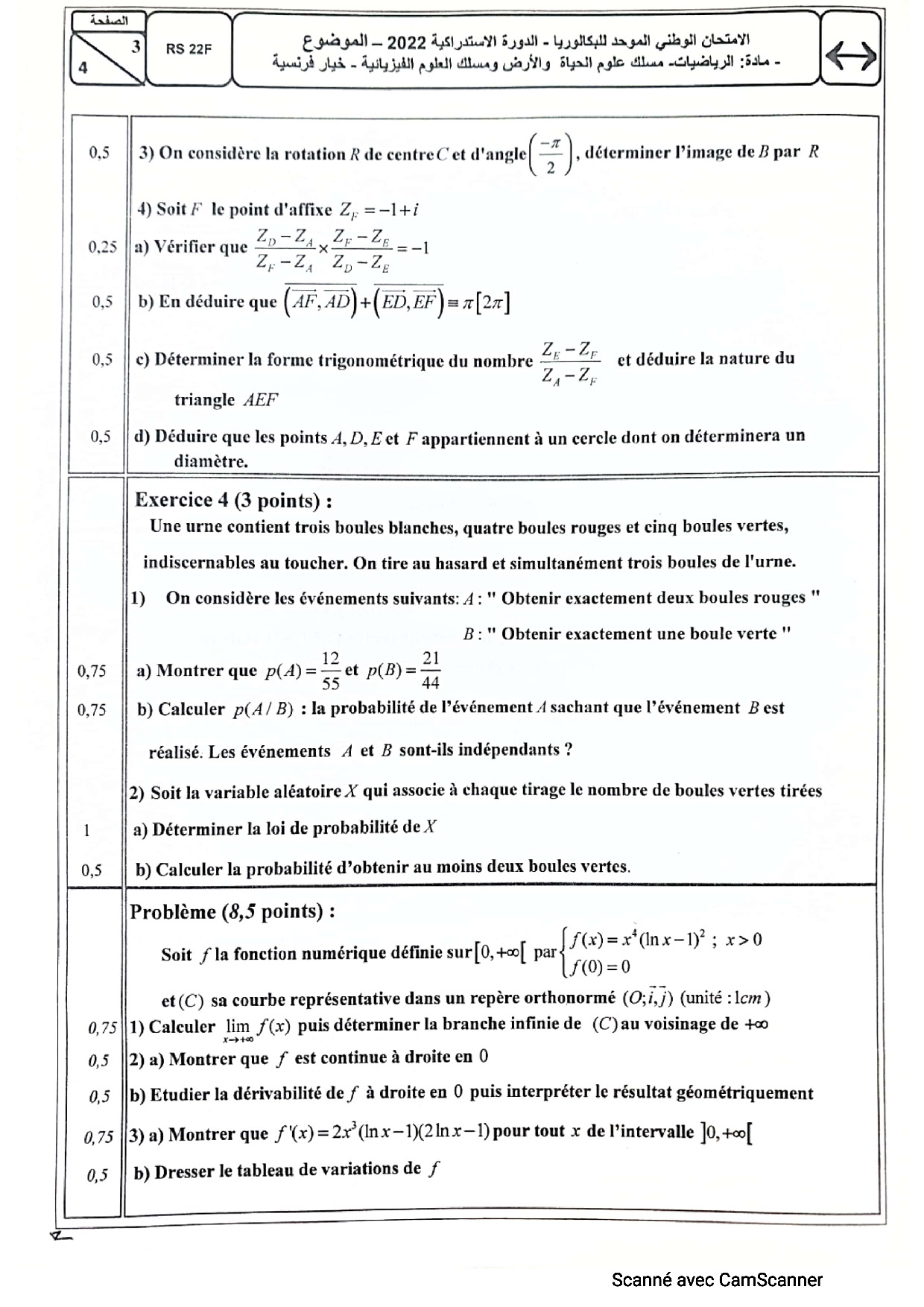 Examen National Maths Sciences et Technologies 2022 Rattrapage - Sujet