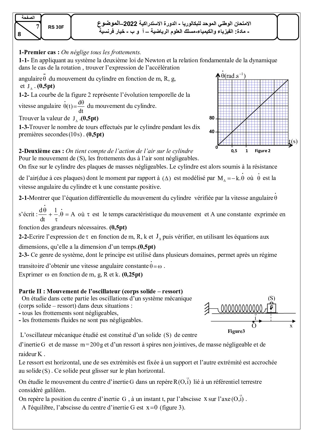 Examen National Physique-Chimie Sciences Maths 2022 Rattrapage - Sujet