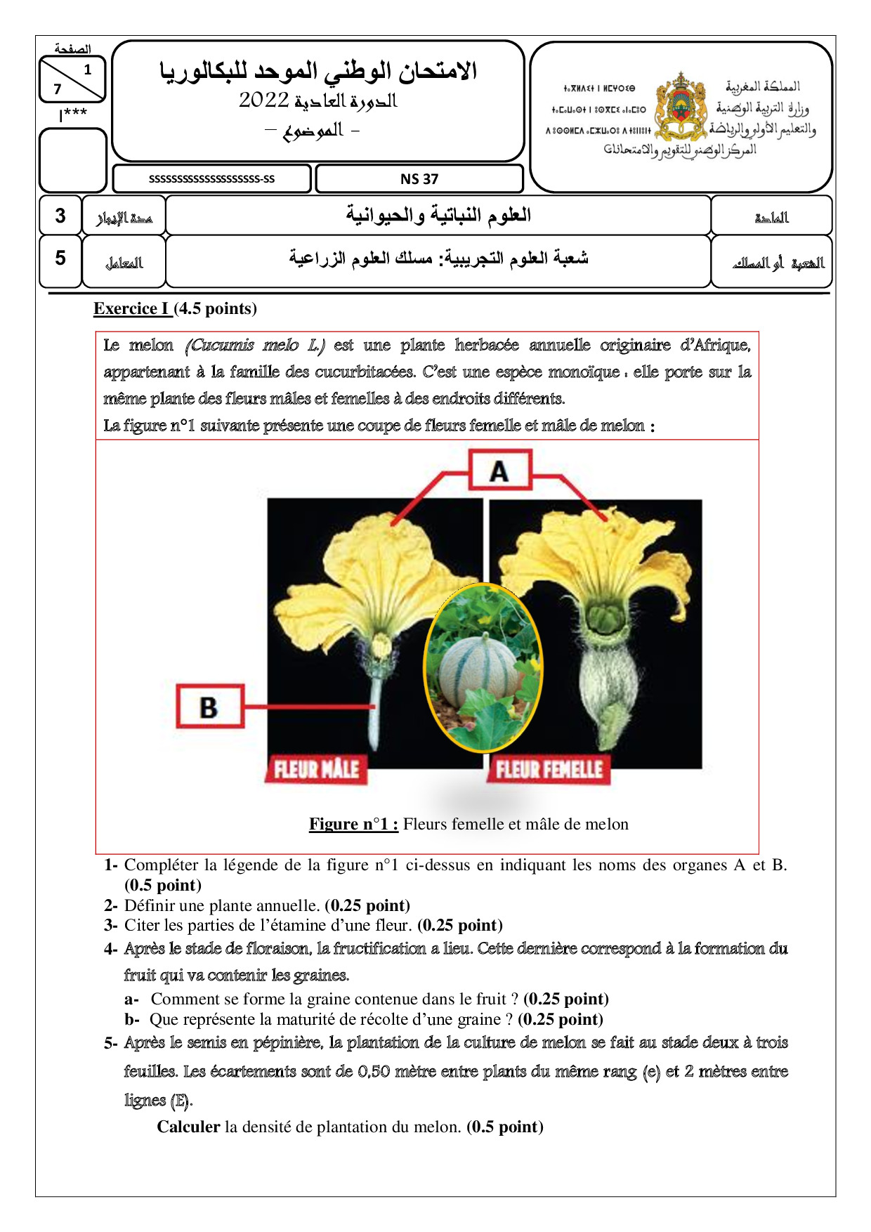 Examen Sciences Végétales et Animales 2022 Session Normale - Sujet
