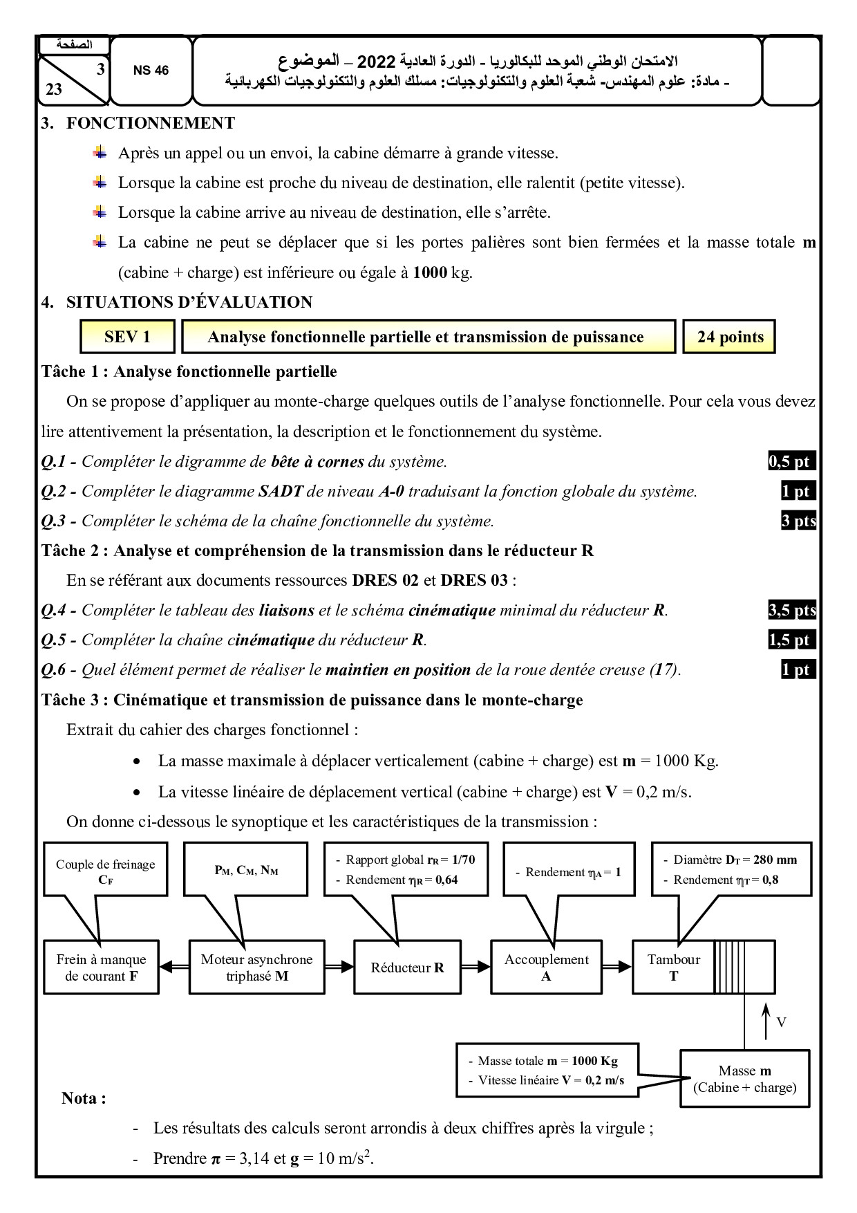 Examen SI 2Bac STE 2022 Session Normale - Sujet