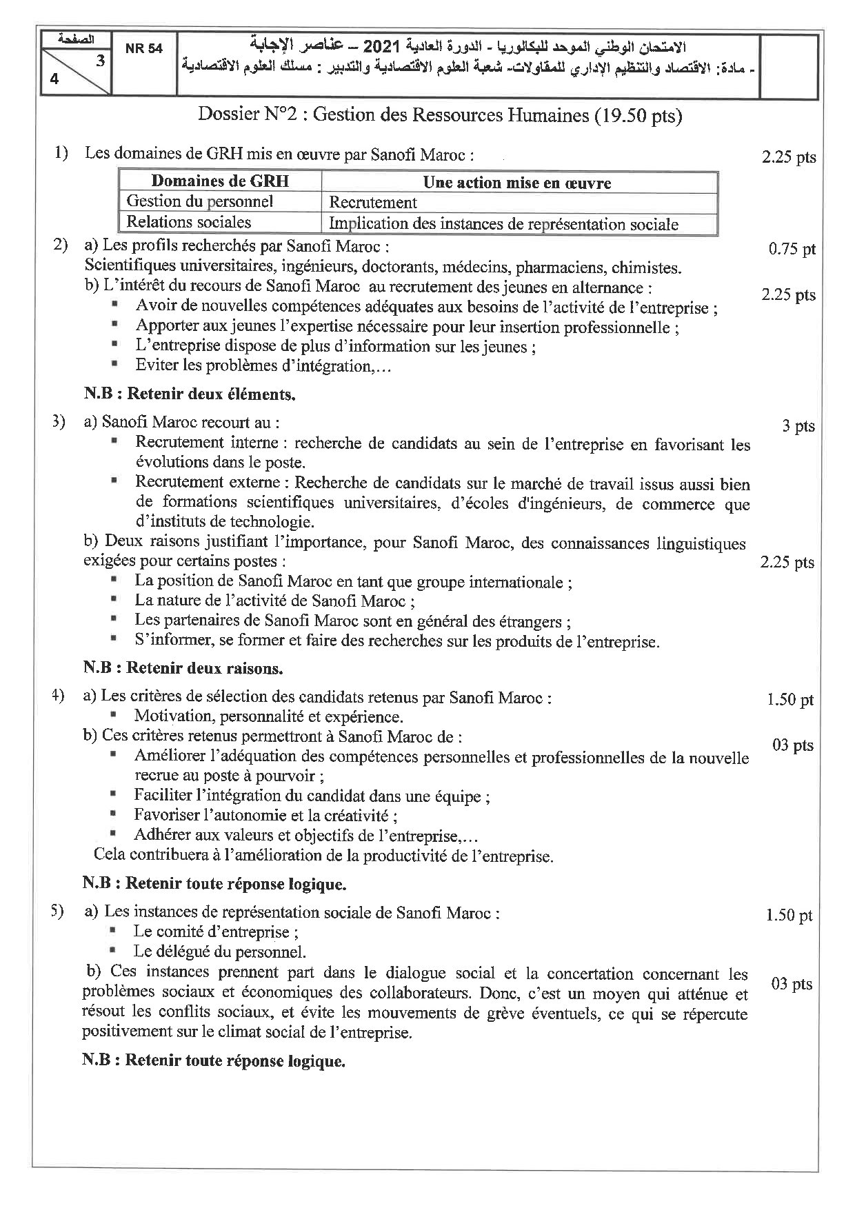 Examen EOAE 2Bac Eco 2021 Normale - Corrigé