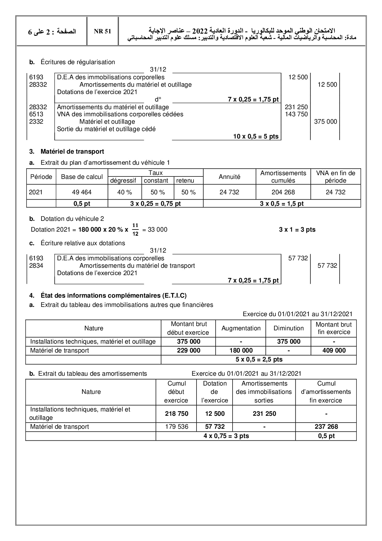 Examen Comptabilité 2Bac SGC 2022 Session Normale - Corrigé