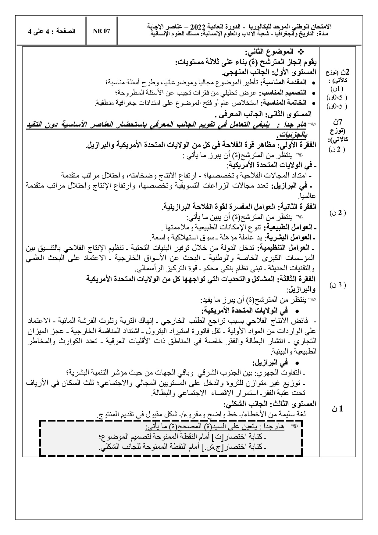 الإجتماعيات (شعبة العلوم الإنسانية) 2022 الدورة العادية - التصحيح