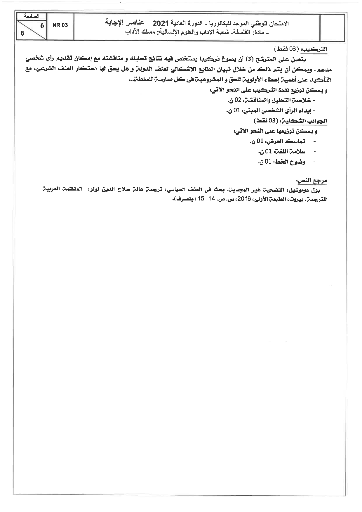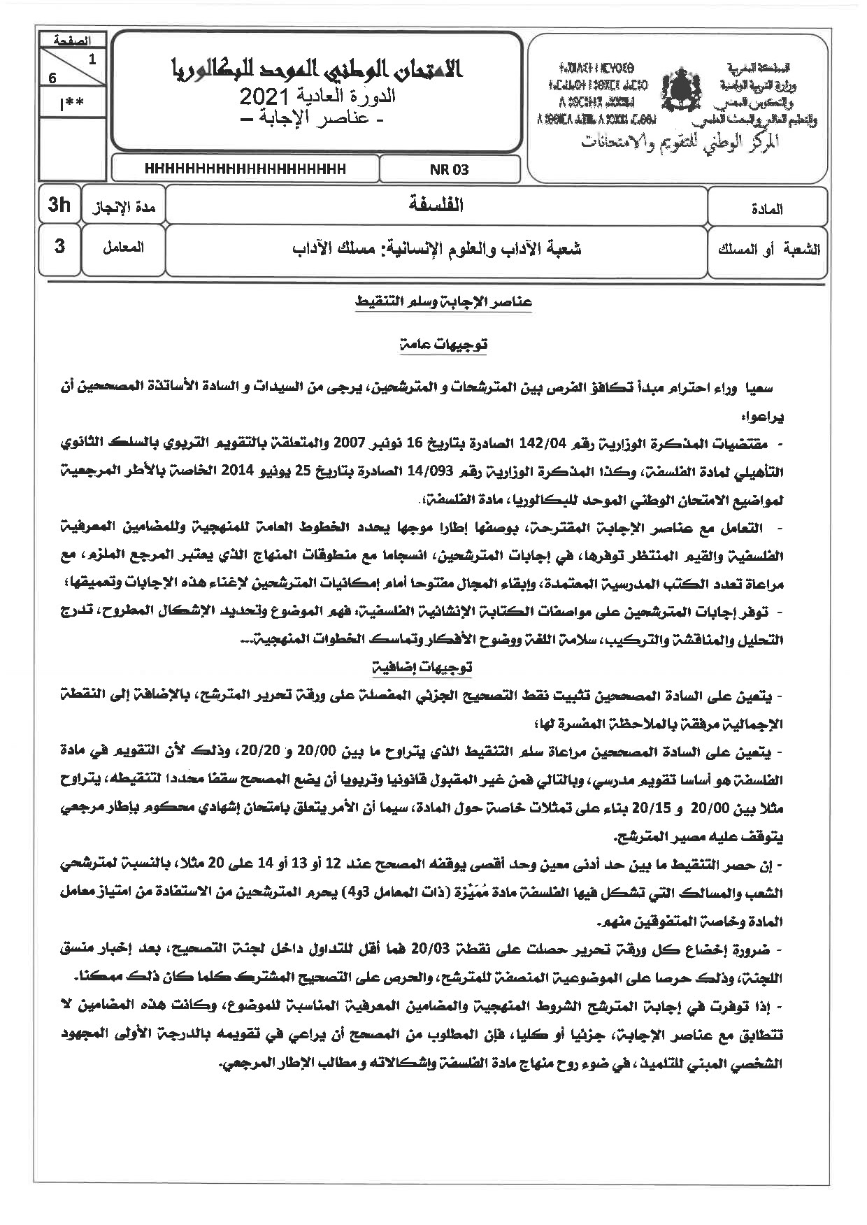 الفلسفة (شعبة الآداب) 2021 الدورة العادية - التصحيح