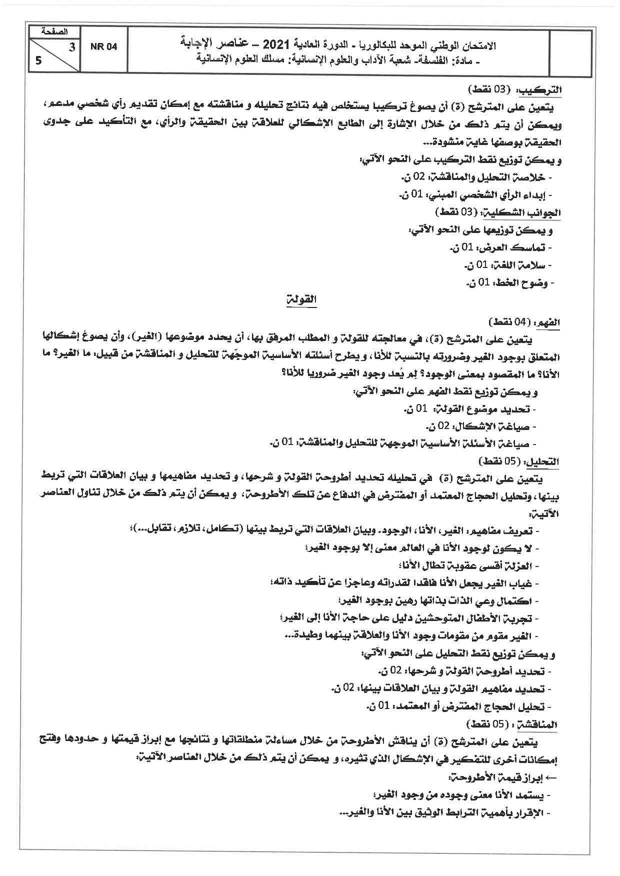 الفلسفة (شعبة العلوم الإنسانية) 2021 الدورة العادية - التصحيح