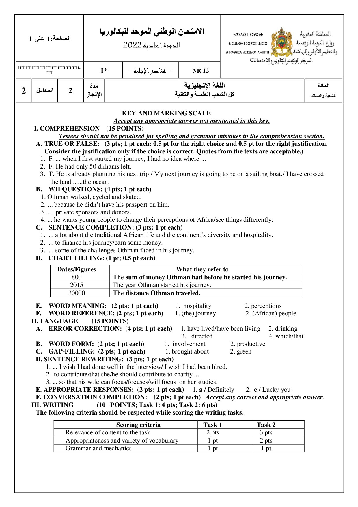 Examen Anglais 2022 Session Rattrapage - Corrigé