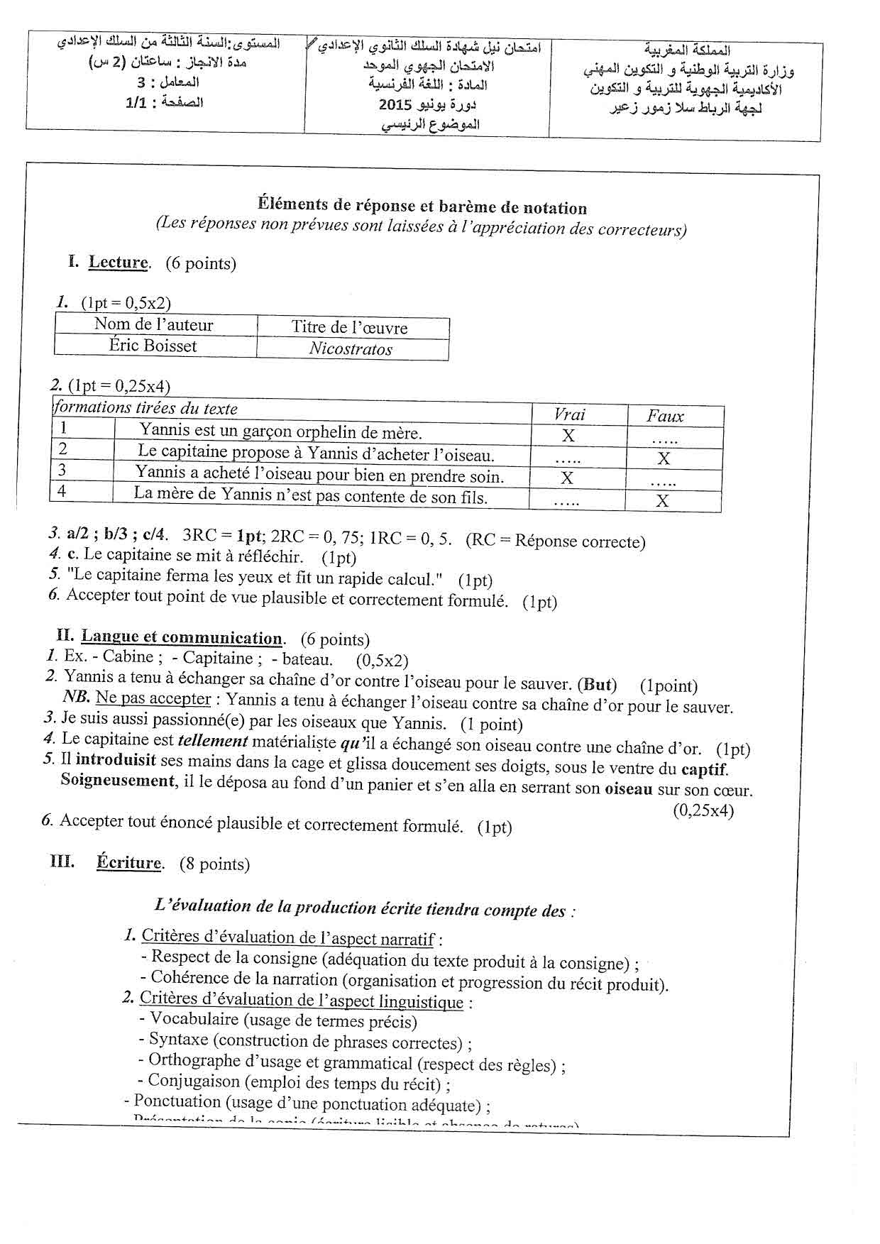 Rabat Salé Zemmour Zaër 2015: Corrigé