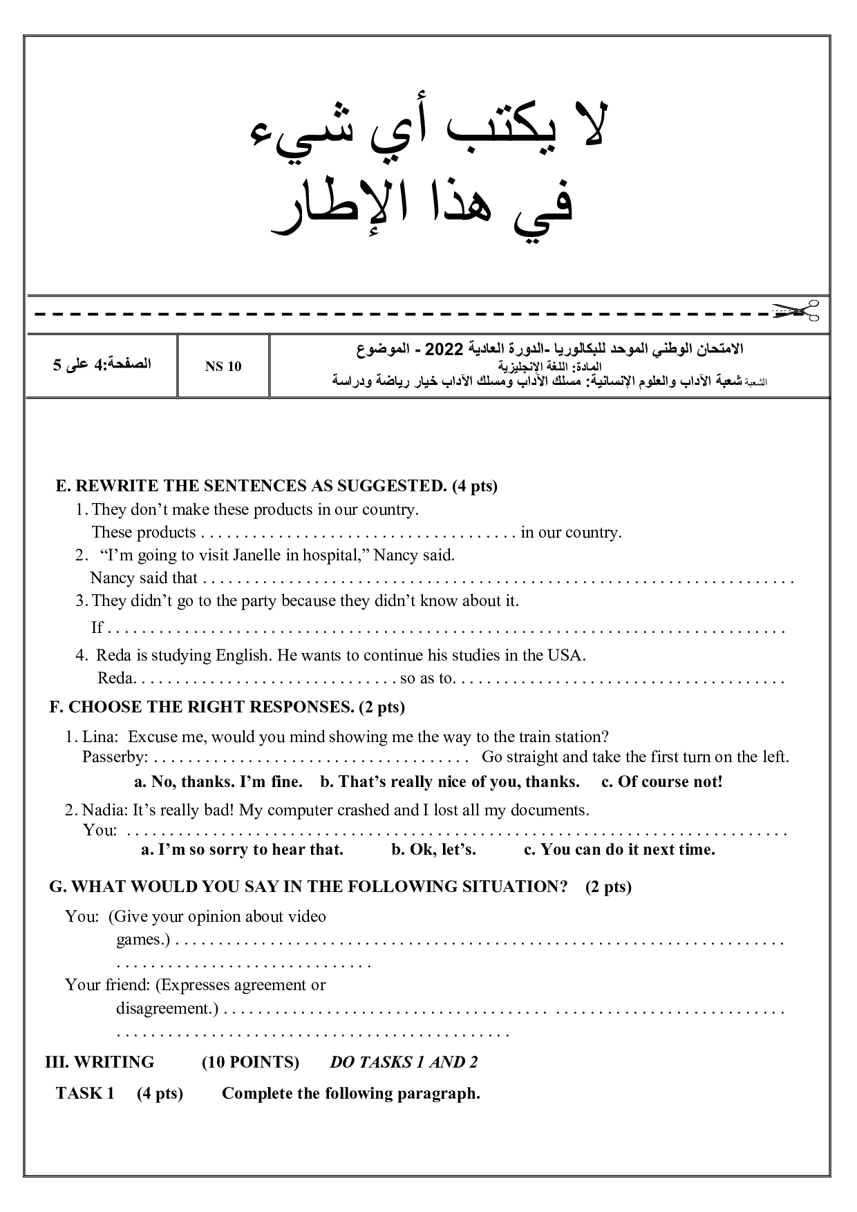 Examen Anglais Lettres 2022 Session Normale - Sujet