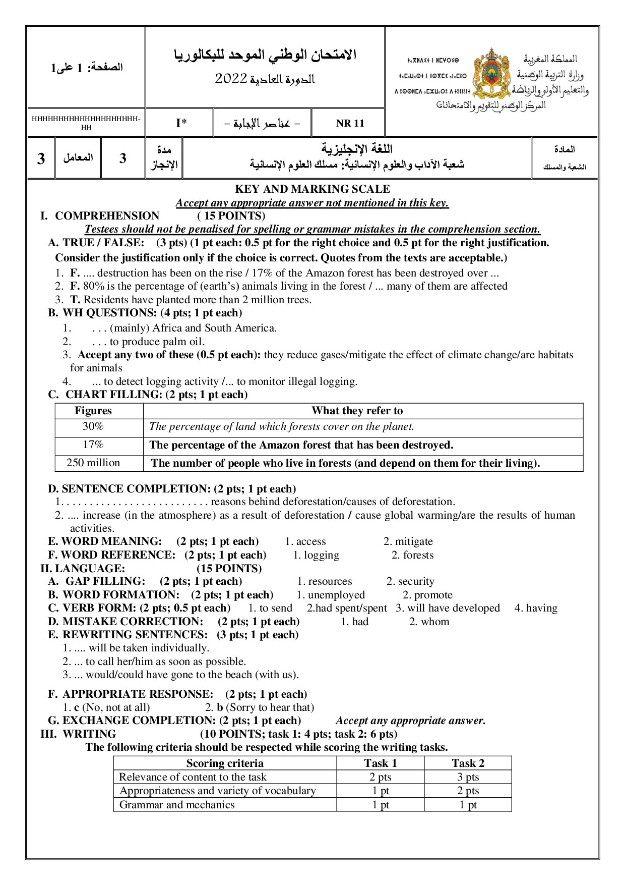 Examen Anglais Science Humaines 2022 Session Normale - Corrigé