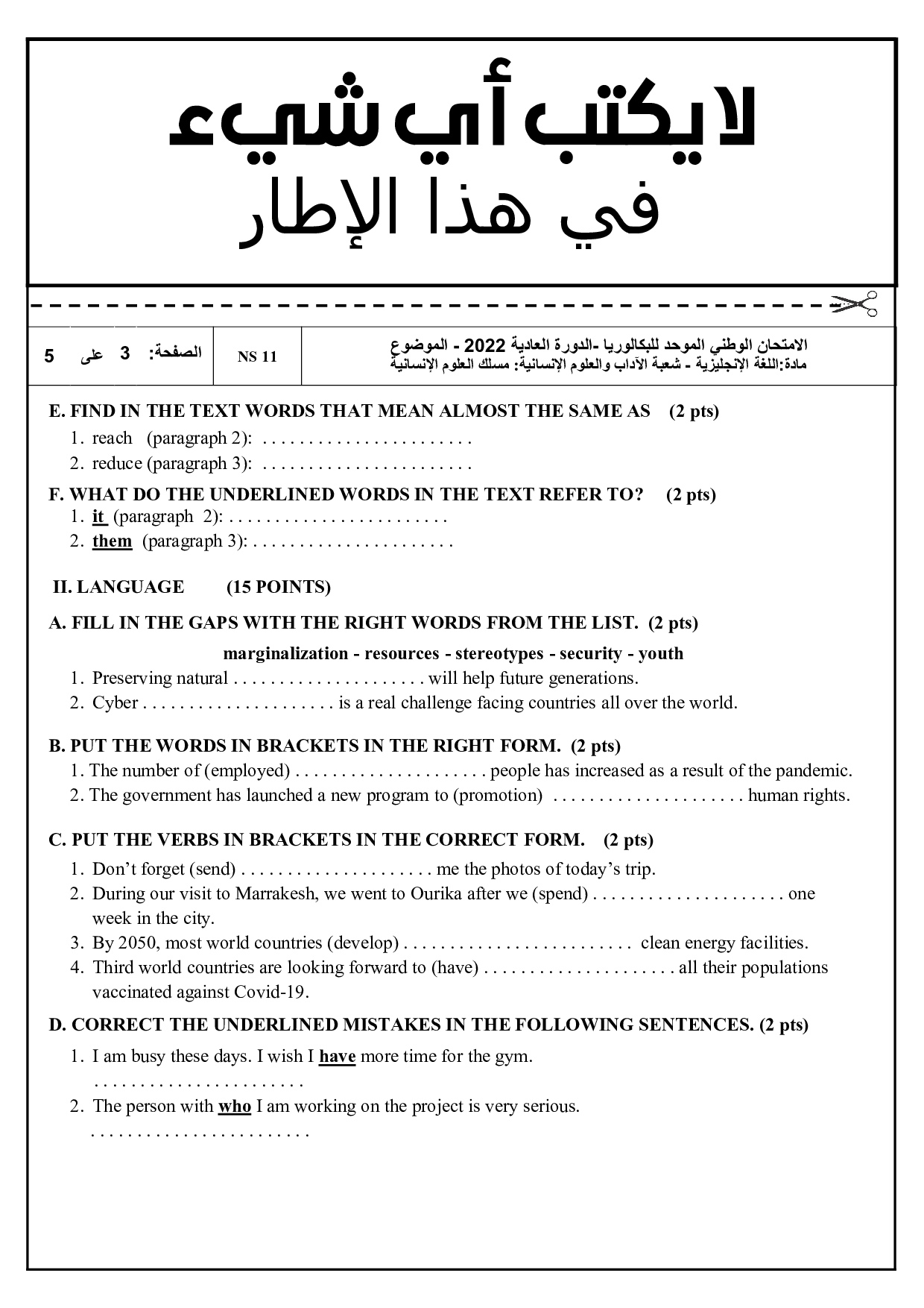 Examen Anglais Science Humaines 2022 Session Normale - Sujet