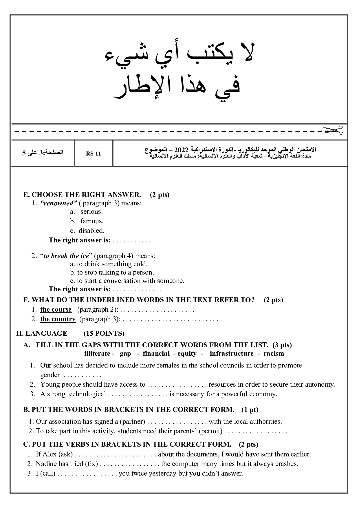 Examen Anglais Science Humaines 2022 Session Rattrapage - Sujet