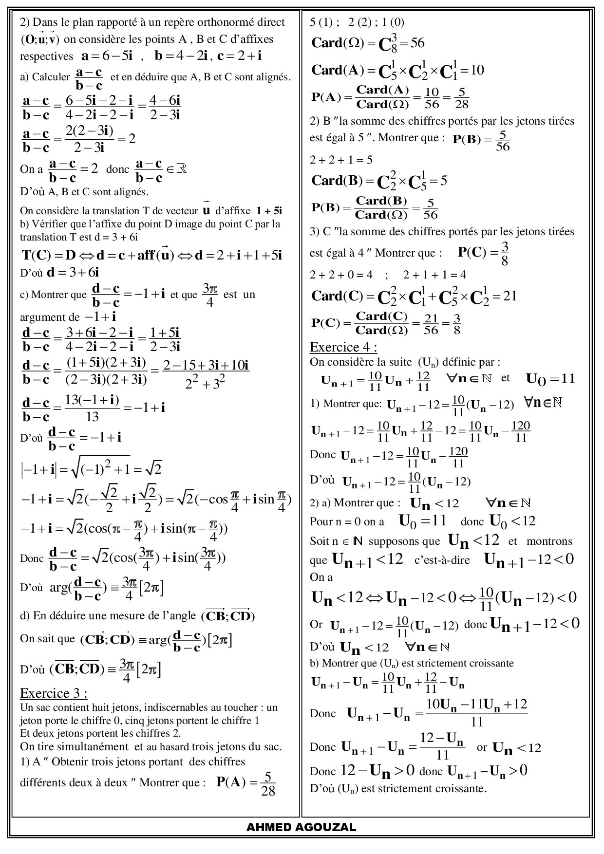 Examen National Maths Sciences et Technologies 2012 Normale - Corrigé