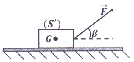 On considère un corps de masse en mouvement sur un plan horizontal considéré rugueux sous l'action d’une force constante d'intensité et inclinée par rapport à l’horizontale d'un angle .
