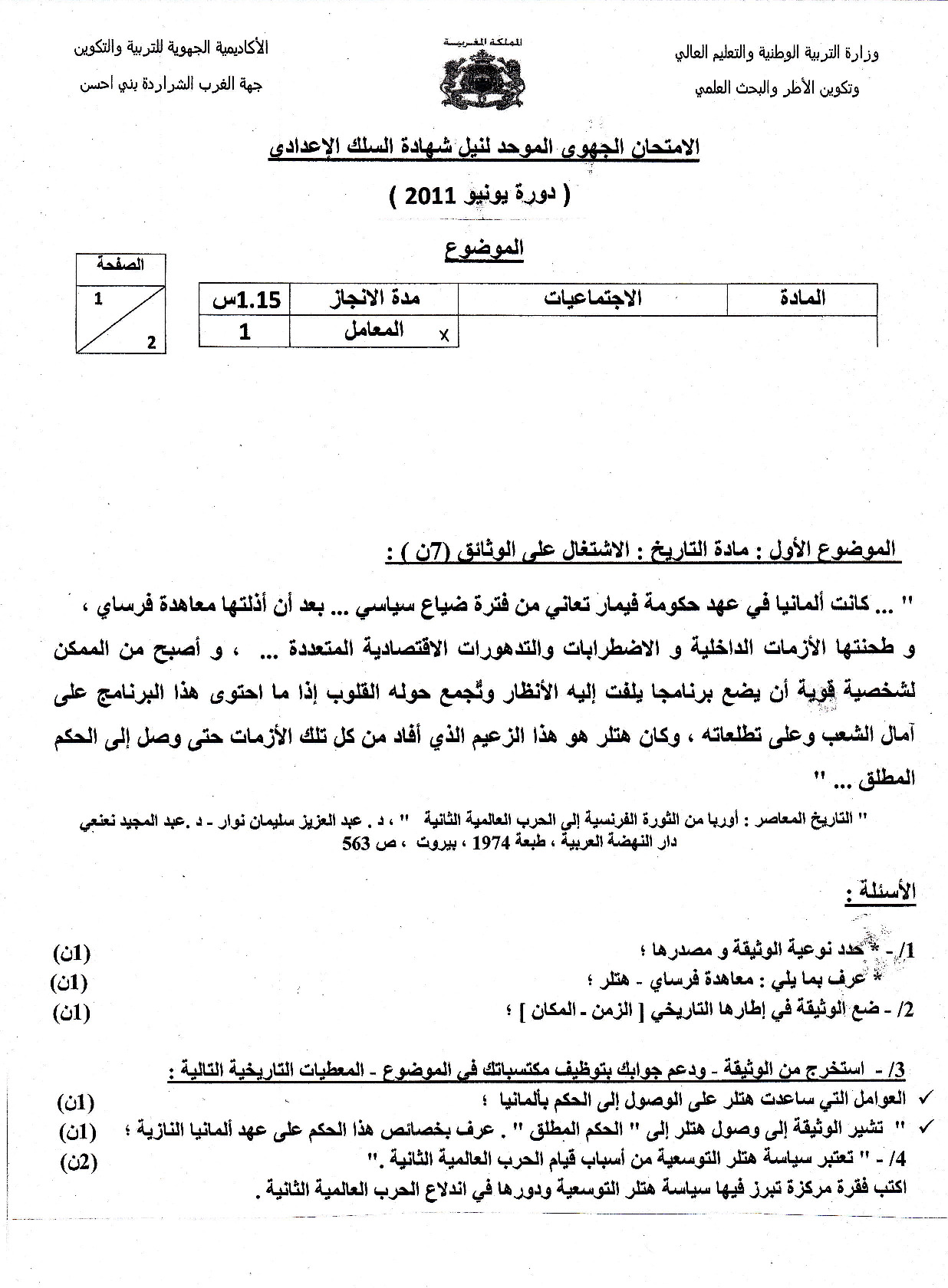 الإجتماعيات: الثالثة إعدادي