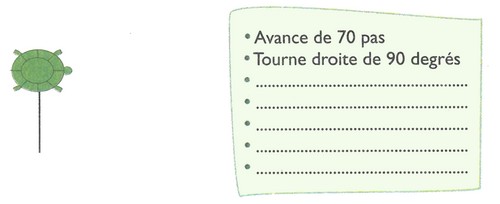 - Écris la liste des ordres à donner à la tortue pour réaliser le dessin suivant :