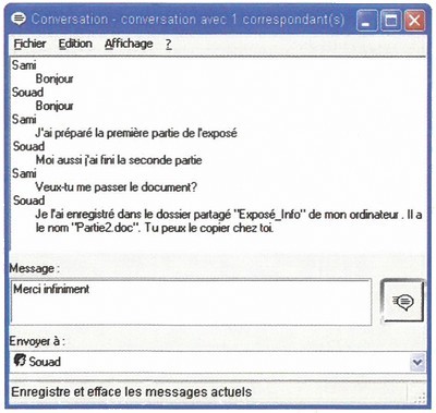 Le document suivant illustre une conversation entre deux personnes dans un réseau local en utilisant NetMeeting :